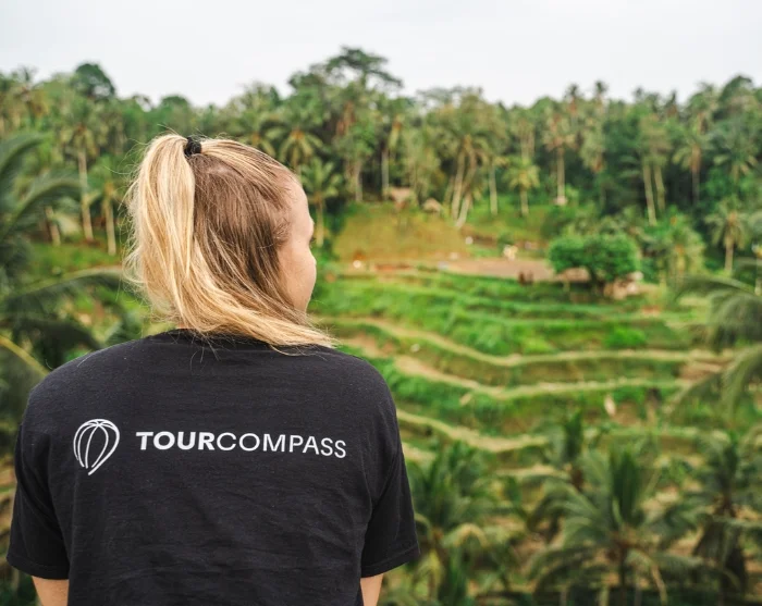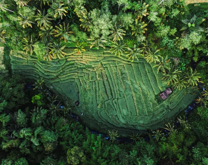 Oppaasi ja kuljettajasi noutavat sinut hotellilta, ja matka suuntautuu Tegalalangin kuuluisille riisiterasseille, jotka ovat yksi Balin tunnetuimmista nähtävyyksistä. Vehreät riisipellot aaltoilevat jyrkillä rinteillä kuin elävä kuvio, ja pienet kastelukanavat kiemurtelevat terassien läpi perinteisen subak-järjestelmän mukaisesti, joka on ollut osa Balin kulttuuriperintöä vuosisatojen ajan. Näköalapaikoilta voit hyvällä tuurilla nähdä paikallisia viljelijöitä työskentelemässä pelloilla samalla kun ikuistat henkeäsalpaavia maisemia, jotka ovat saaren kuvatuimpia näkymiä.