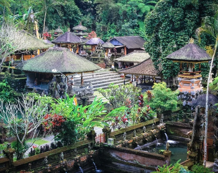 Matka jatkuu seuraavaksi Sebatu-temppelille, joka tunnetaan myös nimellä Pura Gunung Kawi Sebatu. Sitä pidetään yhtenä Balin rauhallisimmista ja hengellisimmistä temppeleistä. Temppeli sijaitsee upeasti vehreän viidakon ympäröimänä ja on rakennettu kristallinkirkkaan lähteen ympärille, jonka uskotaan omaavan parantavia voimia. Täällä saat mahdollisuuden kokea perinteisen balilaisen vesipuhdistusseremonian, jossa pyhän lähteen vesi symbolisesti puhdistaa kehon ja mielen. Oppaasi kertoo rituaalin merkityksestä ja näyttää, kuinka paikalliset astuvat viileisiin altaisiin, lausuvat hiljaisen rukouksen ja antavat veden virrata ylitseen – samalla kun voit itse aistia rauhan ja syventymisen tunnelman.