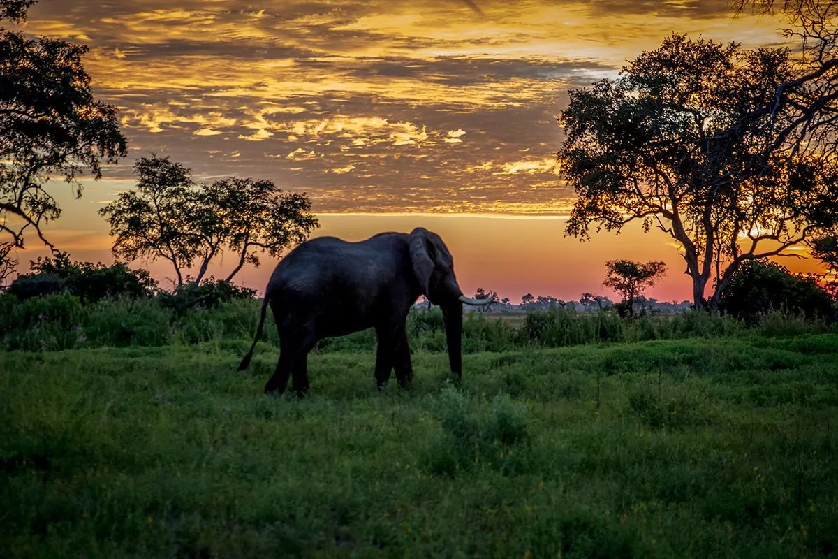 Okavango Deltan auringonlaskut ovat aivan sanoinkuvaamattomia. Näkymä, jossa puolikuolleet puut heijastuvat veteen, norsuista tulee siluetteja, ja taivas muuttuu täysin violetiksi ja vaaleanpunaiseksi, saa useimmat ihmiset haukkomaan henkeään.