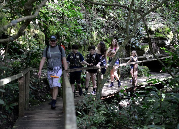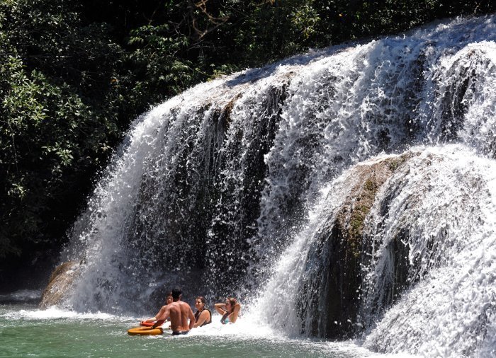 Seuraavaksi lähdetään opastetulle kävelyretkelle Rio Mimoso -jokea ympäröivään vehreään luontoon. Matkan varrella ohitetaan peräti yhdeksän erikokoista ja erinäköistä vesiputousta. Voit uida putousten alle muodostuneissa luonnonaltaissa, tutkia pieniä luolia ja ihastella näköaloja Serra da Bodoquenan putouksille ja Mimosojoen laaksoa reunustaville vuorille. Jos olet rohkealla päällä, voit hypätä luonnonaltaaseen 6 metriä korkealta sillalta! Joillain osuuksilla voit myös nousta veneeseen, ottaa rennosti ja vain nauttia maisemista.