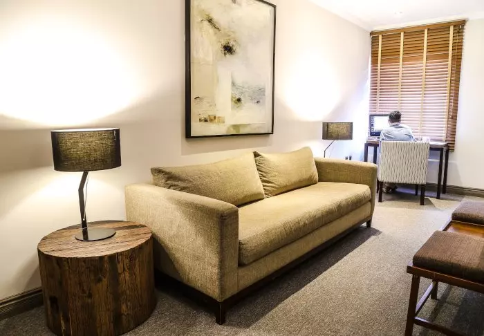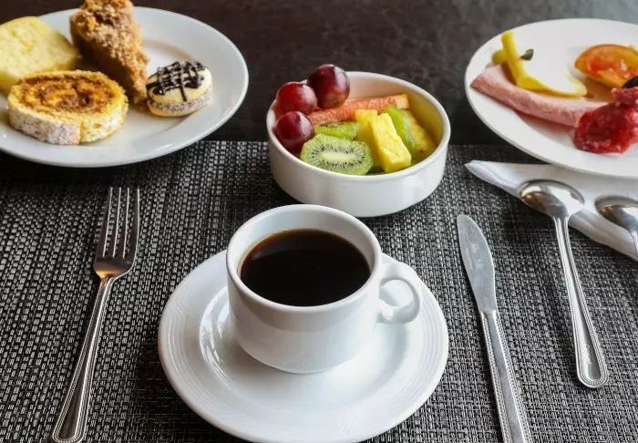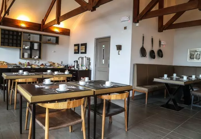 Pitkän päivän jälkeen on mukava rentoutua loungen pehmeissä nojatuoleissa, ja aamulla päivä lähtee hyvin käyntiin tukevalla buffet-aamiaisella.