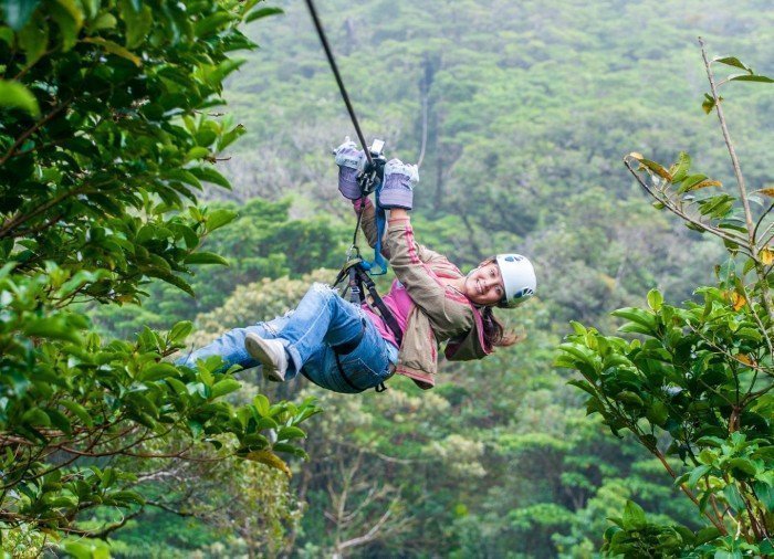 Puiden latvoihin rakennettujen tasanteiden välille on viritetty vaijereita, joiden varassa kiidät vatsanpohjaa kutkuttavalla vauhdilla pilvimetsän rehevän kasvillisuuden yli – ja joskus jopa pilvien läpi. Vaijeriosuuksia on kaikkiaan kahdeksan, joista pisin on 750 metriä pitkä ja korkein kulkee 100 metrin korkeudella maanpinnasta. Nopeus kiihtyy parhaimmillaan jopa 70 kilometriin tunnissa!