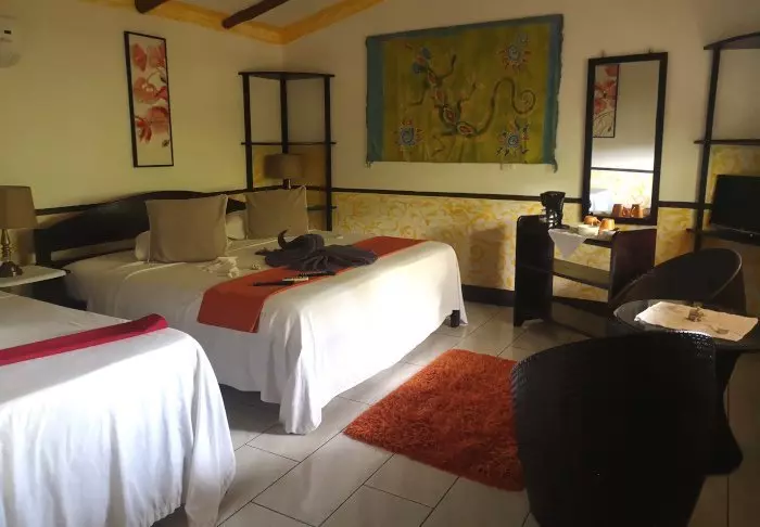 Majoituspaikan rento ilmapiiri toivottaa sinut tervetulleeksi nauttimaan olostasi harmoniassa luonnon kanssa. Hotellia ympäröi rehevä sademetsä, ja viihtyisällä uima-allasalueella voit pulahtaa virkistävälle uinnille tai siemailla kylmää juomaa aurinkotuolilla palmujen ja eksoottisten kukkien ympäröimänä. Pienessä hotellissa on vain 17 huonetta, joissa kaikissa on ilmastointi, kattotuuletin, minibaari, tallelokero, hiustenkuivaaja, televisio, tarvikkeet kahvin ja teen valmistukseen sekä oma kylpyhuone.