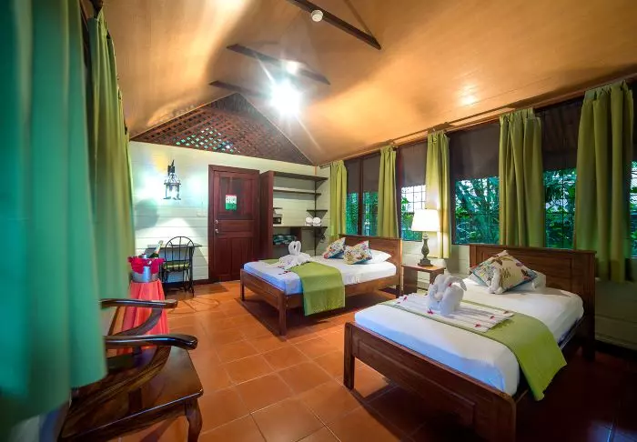 Lodgeen kuuluu 10 viehättävää perinteiseen tyyliin rakennettua ja sisustettua bungalowia, joita ympäröivät vehreät kasvit ja puut luovat rennon trooppista tunnelmaa. Kuhunkin bungalowiin mahtuu majoittumaan 4 henkeä. Korkeat katot edistävät luonnollista ilmanvaihtoa, ja huoneiden varustuksiin kuuluvat taulutelevisio, minijääkaaappi, tallelokero, kattotuulettimet, hyönteisverkot ja oma kylpyhuone hiustenkuivaajalla. Bungaloweissa on myös yksityinen terassi, jonka riippumatolla voit rentoutua ja nauttia lomastasi ja kauniista maisemista täysin rinnoin.