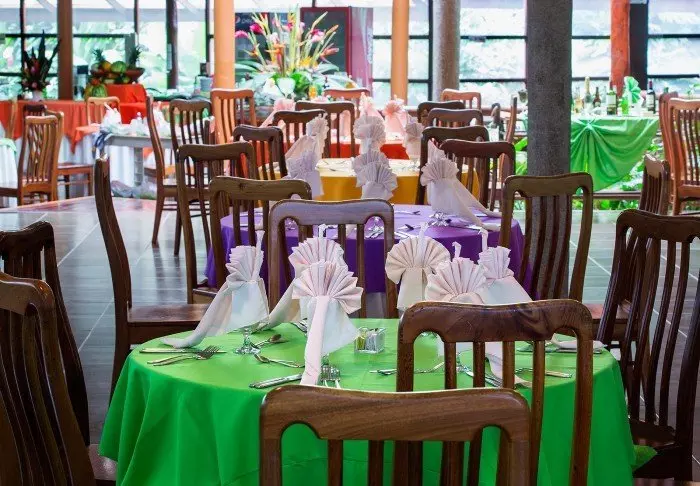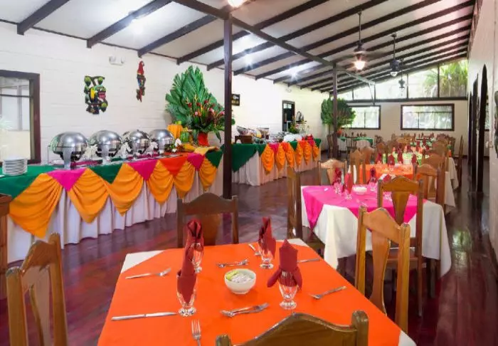 Lodgen ravintolassa on tarjolla sekä costaricalaisia erikoisuuksia että kansainvälisen keittiön tuttuja ruokia. Majoitukseen sisältyvä aamiainen tarjoillaan myös lodgen ravintolassa. Ravintolassa on usein paikallinen live-esiintyjä, jonka musiikista voit nauttia aterian yhteydessä tai viinilasillisen painikkeeksi. Iltapäivällä voit tilata kupin kahvia ja suunnata lodgen loungealueelle lukemaan kirjaa. Viihtyisällä sisäpihalla puolestaan luovat tunnelmaa suihkulähteet, puistonpenkit ja monenlaiset vehreät kasvit.