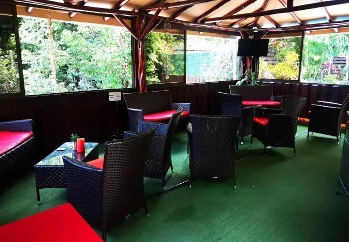 Majoitukseen sisältyvä aamiainen tarjoillaan hotellin katetussa ulkoilmaravintolassa, josta avautuu hurmaava näköala ympäröivään luontoon. Ravintolassa tarjoillaan myös lounasta ja illallista. Keskellä hotellin rehevää puutarhaa on uima-allas, joka kutsuu virkistäytymään tai rentoutumaan aurinkotuolissa Arenal-tulivuoren upeissa maisemissa.