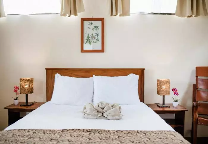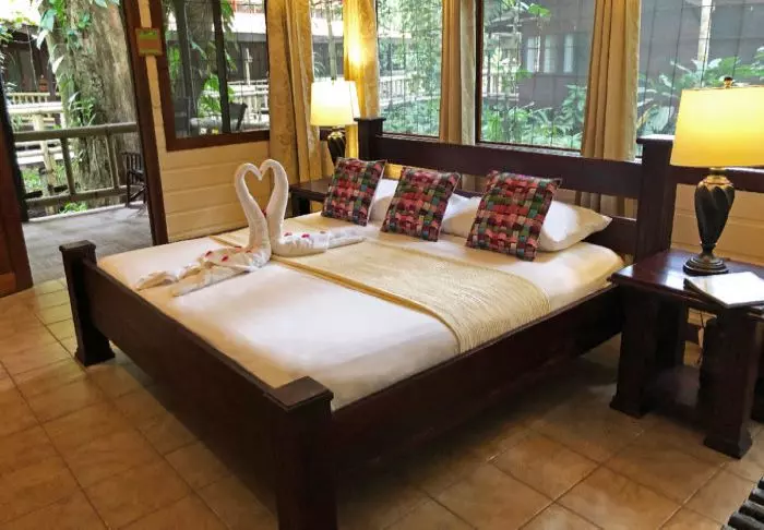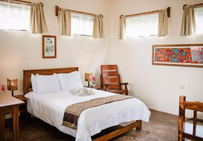 Hotellissa on yhteensä kahdeksan kodikasta bungalowia, jotka on sijoiteltu pienille kukkuloille. Kuhunkin bungalowiin mahtuu enintään 4 majoittujaa. Kaikissa bungaloweissa on kattotuuletin, tallelokero, hyönteisverkot vuoteiden yläpuolella ja oma kylpyhuone, jossa on hiustenkuivaaja ja kylpytuotteita. Bungalowiin kuuluvalla terassilla on pari riippumattoa, joissa on mukava rentoutua ja nauttia maisemista tapahtumientäyteisen päivän jälkeen. Hyvällä onnella voit bongata papukaijoja, tukaaneja, kolibreja ja muita eksoottisia lintuja.