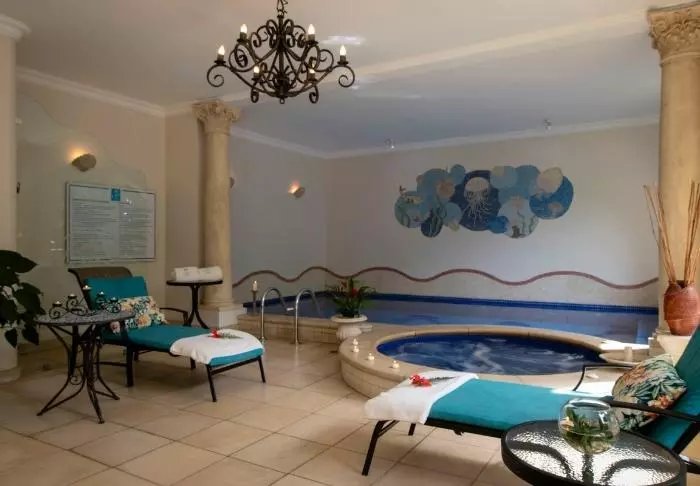 Voit myös hemmotella itseäsi ylellisessä ja eksklusiivisessa kylpylässä, jossa on tarjolla erilaisia hoitoja ja hierontaa lisämaksusta.