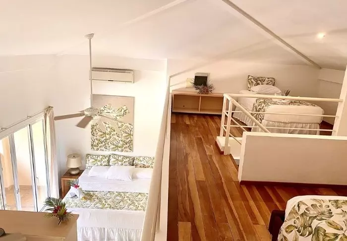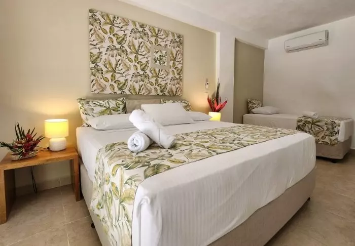 Hotellissa on vain 32 huonetta, joista on näköala joko trooppiseen puutarhaan tai merelle. Huoneet ovat tilavia ja kauniisti sisustettuja, ja niiden mukavuuksiin kuuluvat ilmastointi, jääkaappi, kaapeli-TV, kahvinkeitin, tallelokero, WiFi, hiustenkuivaaja ja kylpytuotteet.