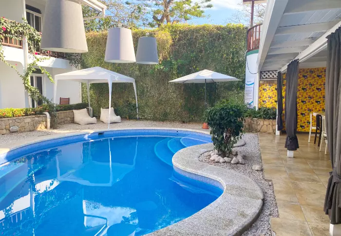 Huoneita on vain 25, ja ne reunustavat pientä vehreää puutarhaa. Puutarhan keskellä on uima-allas ja ulkoporeallas, jotka kutsuvat rentoutumaan ja nauttimaan hyvästä kirjasta. Hotellin baarista voit tilata altaalle kylmän juoman tai kupillisen aromikasta costaricalaista kahvia.