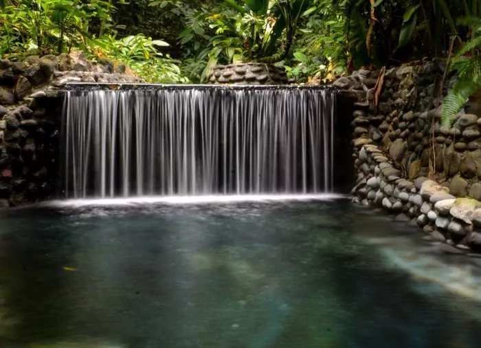Vesiputous pulppuaa 70 metrin matkan alhaalla odottavaan laguuniin, jossa voit halutessasi uida.
