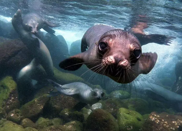 Veneessä nautitun lounaan jälkeen on aikaa vielä snorklata kirkkaassa vedessä värikkäiden trooppisten kalojen lomassa. Uteliaat ja leikkisät merileijonat tulevat mielellään tervehtimään snorklaajia, mikä on monelle koko päivän suurin kohokohta.