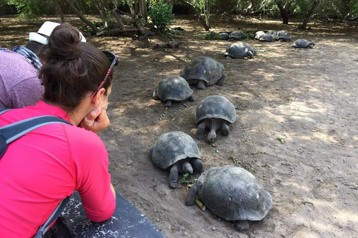 Lyhyen kävelykierroksen jälkeen matka jatkuu Hacienda Primicias -ranchille, jossa pääset näkemään vapaana eläviä galápagoksenjättiläiskilpikonnia. Muhkeat konnat löntystelevät hitaasti maatilan ympäristössä ja käyttävät suurimman osan ajastaan syömiseen ja nukkumiseen. Ne voivat elää yli satavuotiaiksi ja kasvaa jopa 250-kiloisiksi, ja niiden näkeminen ihan läheltä on todella ainutlaatuinen elämys. Maatilalla nautitaan myös ohjelmaan sisältyvä lounas.