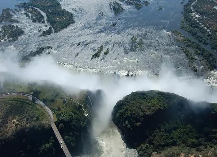 Voimme luvata, että tämä retki on ehdottomasti hintansa väärti! Victorian putoukset ovat maailman suurimmat riippuen siitä, miten putouksia mitataan. Ne eivät ole maailman korkeimmat putoukset eivätkä putoukset, joiden läpi virtaa eniten vettä. Mutta 1,7 kilometrin levyisinä ne muodostavat kirkkaasti maailman leveimmän vesiputouksen – ja samalla myös putouksen, jota on mahdoton nähdä kokonaisuudessaan maan pinnalta.