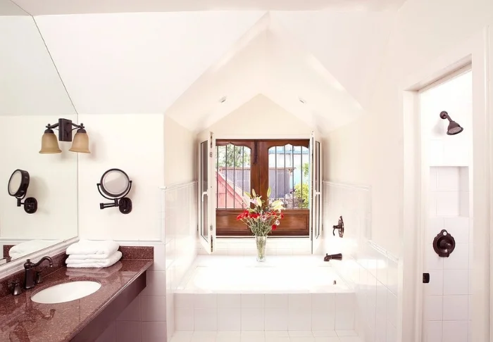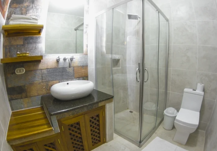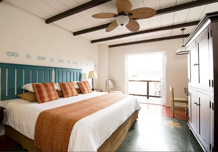 Vaaleasävyisten huoneiden sisustuksessa näkyvät paikalliset elementit. Mukavuuksiin kuuluvat ilmastointi, kattotuuletin, WiFi, televisio, tee- ja kahvitarvikkeet sekä oma terassi tai parveke.