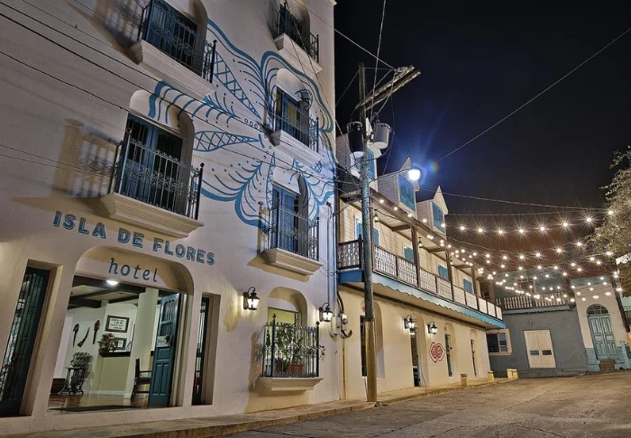 Hotel Isla de Flores on viihtyisä hotelli viehättävällä Isla de Floresin saarella. Hotelli sijaitsee keskellä Floresin historiallista keskustaa, missä sitä ympäröi hieno siirtomaa-ajan arkkitehtuuri. Lähikaduilla on lukuisia hyviä ravintoloita ja pieniä kahviloita.