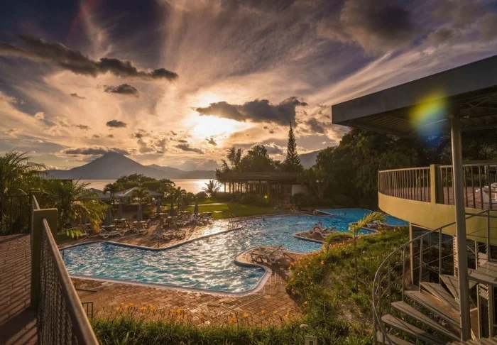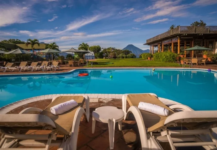 Seikkailupäivän jälkeen voit virkistäytyä uima-altaassa tai nauttia eksoottisen drinkin puutarhassa aurinkotuolilla istuskellen. Atitlán-järvi sijaitsee vain muutaman sadan metrin päässä hotellista, ja rannalta avautuu lumoavan kaunis näköala veden yli horisontissa siintäville majesteettisille tulivuorille.