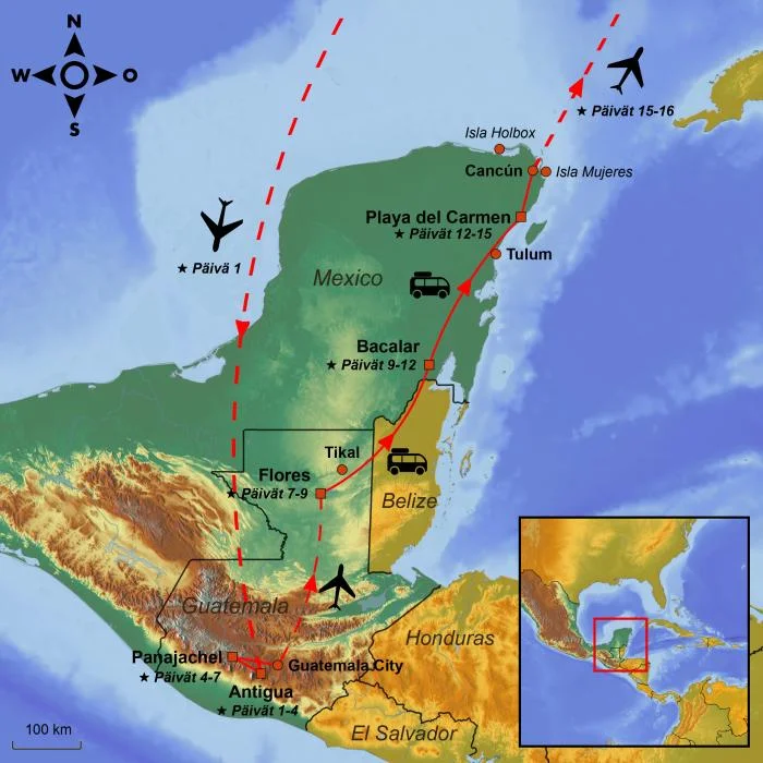 Tämä tapahtumarikas kiertomatka vie sinut ihan lähelle Guatemalan kulttuuria, luontoa ja historiaa ja huipentuu rantalomaan Karibianmeren hiekkarannoilla Meksikossa.