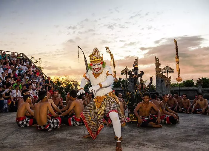 Hämärän laskeuduttua on ohjelmassa perinteinen balilainen Kecak-tanssiesitys, jossa tanssijoina on suuri joukko miehiä. Kuuluisa balilainen tanssi kertoo kuningas Rahwanasta, joka vangitsi Raman vaimon Sitan. Tanssi kuvaa Rahwanan ja apinoiden kuninkaan Hanomanin välistä kamppailua.