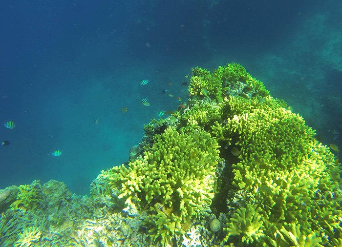 Niin sukeltajat kuin snorklaajatkin pitävät Menjanganin koralliriuttaa todellisena maailmanluokan kohteena, ja mukanasi vedessä on opas, joka näyttää parhaat paikat ja kertoo lisää alueella elävistä kaloista, äyriäisistä ja koralleista.