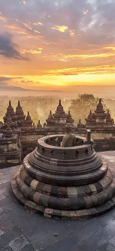 Myöhemmin päivällä on edessä vierailu mahtavassa Borobudurin temppelikompleksissa eli ”buddhalaisluostarissa kukkulalla”. Valtavaan temppelialueeseen tutustutaan jalkaisin. Vierailun aikana opas kertoo temppelialueen kiehtovasta historiasta ja kivestä veistettyjen kohokuvien symboliikasta. Pääset myös tutkimaan temppelin sopukoita ja mielenkiintoisia veistoksia itsenäisesti. Loppupäivästä palataan hotellille.