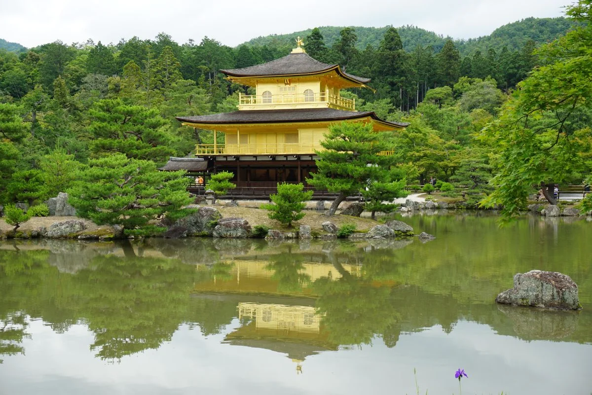 Kiotossa sijaitsee useita ikonisia temppeleitä ja pyhäkköjä. Ehkä tunnetuin niistä on Kultainen paviljonki, Kinkakuji, joka heijastuu kauniisti ympäröivän lammen pintaan. Tämä elegantti rakennus kuuluu Kioton kuvatuimpiin nähtävyyksiin ja näkymä on erityisen vaikuttava auringon osuessa kultaiseen julkisivuun.