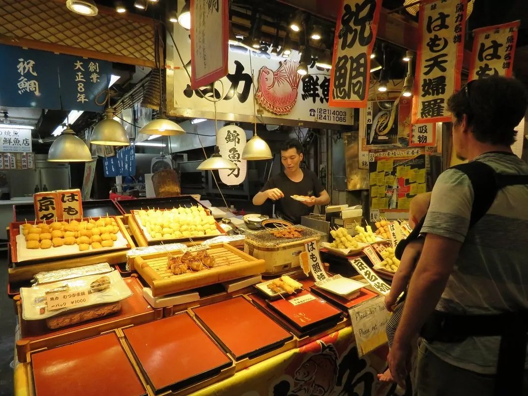 Kun nälkä yllättää, kannattaa suunnata vilkkaalle Nishikin ruokatorille, jossa pääset maistelemaan paikallisia herkkuja ja naposteltavia sekä seuraamaan kiotolaista arkea torin tunnelmallisessa vilinässä.
