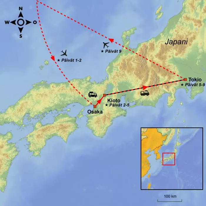 Tämä matka vie sinut Japanin ytimeen. Sukella vanhan pääkaupungin Kioton historiaan ja tutustu sen syvälle juurtuneeseen kunnioituksen, järjestyksen ja vanhojen perinteiden kulttuuriin. Seikkaile hypermodernissa Tokiossa Keisarillisen palatsin historiallisista tunnelmista Akihabaran mangamekkaan ja superrikkaiden Ginzaan. Kioton hyvin säilynyt kaupunkikuva ja sen matalat, ohutseinäiset puutalot liukuovineen vievät sinut menneen ajan Japaniin, kun taas Tokiossa pääset ihailemaan futuristisia mega-asemia, modernia arkkitehtuuria ja pilvenpiirtäjiä.