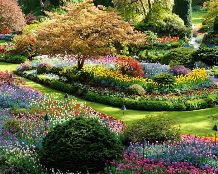 Lähde tutkimaan Victorian Butchart Gardensia, kansallishistoriallista maamerkkiä, joka on täynnä värikkäitä kukkapenkkejä, vihreitä nurmikoita ja hyvin suunniteltuja polkuja.