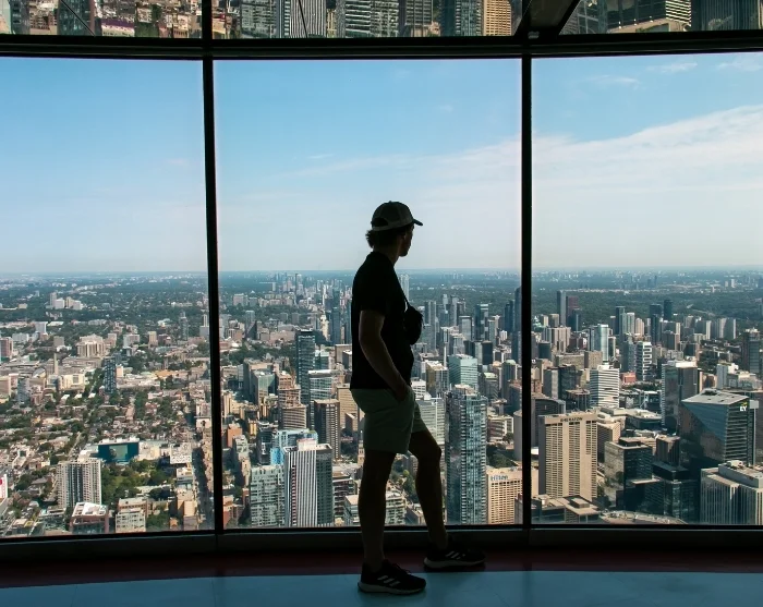 Matkasi sisältää pääsylipun torniin, mutta ihan huipulle vieraat eivät valitettavasti pääse. Hissi pysähtyy 346 metrin korkeudessa, missä voit ihailla näköalatasanteelta näkymiä Ontariojärvelle sekä kaupungin kattojen ja viheralueiden yli. Jos uskallat, voit astua kerrosta alempana sijaitsevalle lasilattiaiselle tasanteelle. Alhaalla kadulla ajavat autot näyttävät pieniltä hyönteisiltä näistä korkeuksista katsottuna.