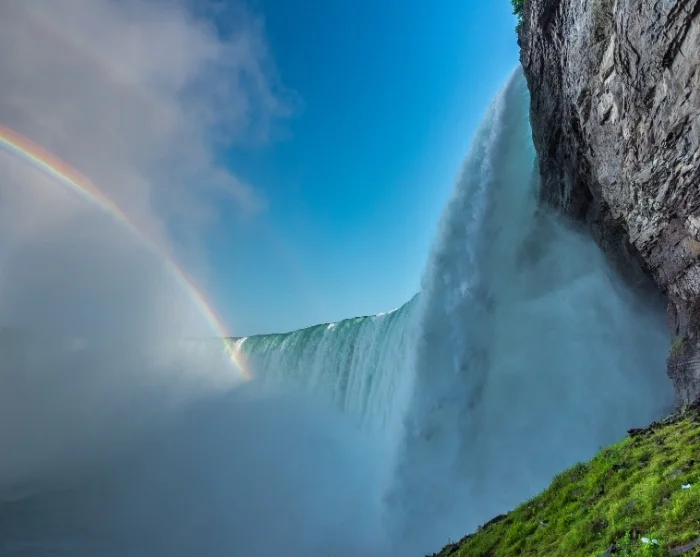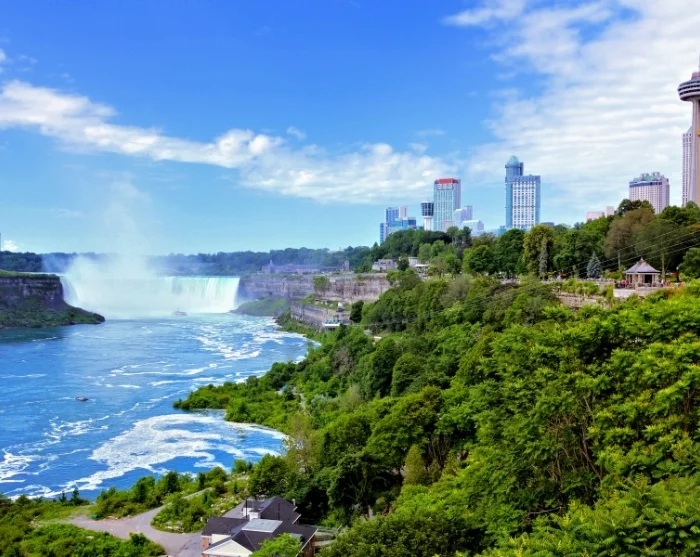 Aloita päivä tukevalla aamiaisella ja siirry sitten bussilla tai kävellen valtavalle vesiputoukselle, joka koostuu kolmesta pääputouksesta: Horseshoe Falls, American Falls ja Bridal Veil Falls. Pelkästään putouksista suurimman eli Horseshoe Fallsin läpi virtaa peräti 90 prosenttia koko vesiputouksen vedestä. Valtavat vesimassat putoavat 57 metriä ja jättävät jälkeensä kauniin vesisumupilven. Kun aurinko paistaa, voit nähdä sateenkaaren.