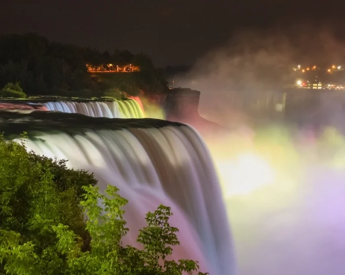 Jos ääni voimistuu, tiedät käveleväsi oikeaan suuntaan, ja yhtäkkiä olet perillä mahtavien Niagaran putousten reunalla. Jos saavut paikalle illan hämärtyessä, voit nähdä valaistujen putousten hehkuvan kaikissa sateenkaaren väreissä.