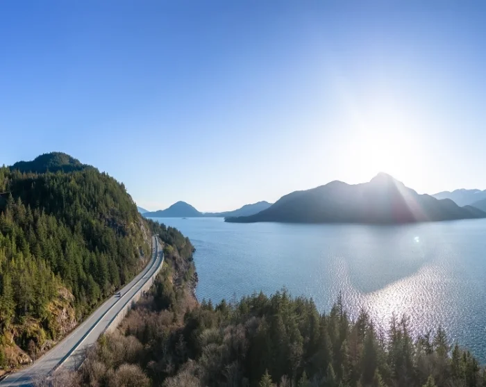 Ensimmäinen osuus Whistleristä lähdettyä kulkee jälleen pitkin yhtä Highway 99:n maisemareittiä, joka tunnetaan nimellä ”Sea to Sky Highway”. Kuten nimestä voi päätellä, tänään pääset nauttimaan meren – ”Sea” – ja taivaita hipovien vuorten – ”Sky” – huikeasta kontrastista.