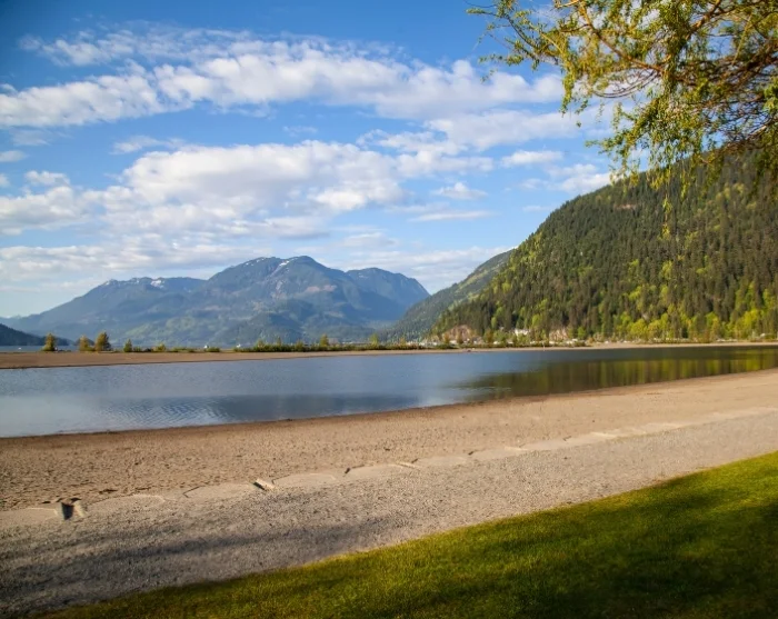 Noin 1,5 tunnin ajomatkan jälkeen suosittelemme pitämään paussin Harrison Hot Springsin pienellä rannalla. Se on loistava paikka kahvitauolle, ja lämpiminä kesäkuukausina voit virkistäytyä uimalla Harrisonjärvessä.