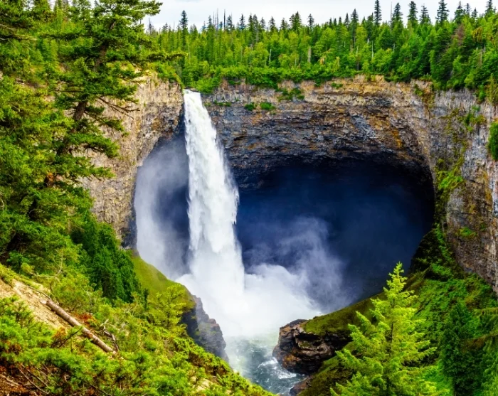 Wells Gray Provincial Park tunnetaan erityisesti vuolaista vesiputouksistaan. Täällä sinua odottaa hiuksia nostattava hetki, kun seisot Kanadan neljänneksi korkeimman vesiputouksen Helmcken Fallsin edessä ja katselet 141 metrin korkeudesta rotkoon vyöryviä vesimassoja ja niiden muodostamaa sumupilveä (putous sijaitsee noin 45 minuutin ajomatkan päässä Clearwaterista).