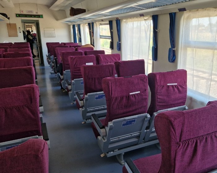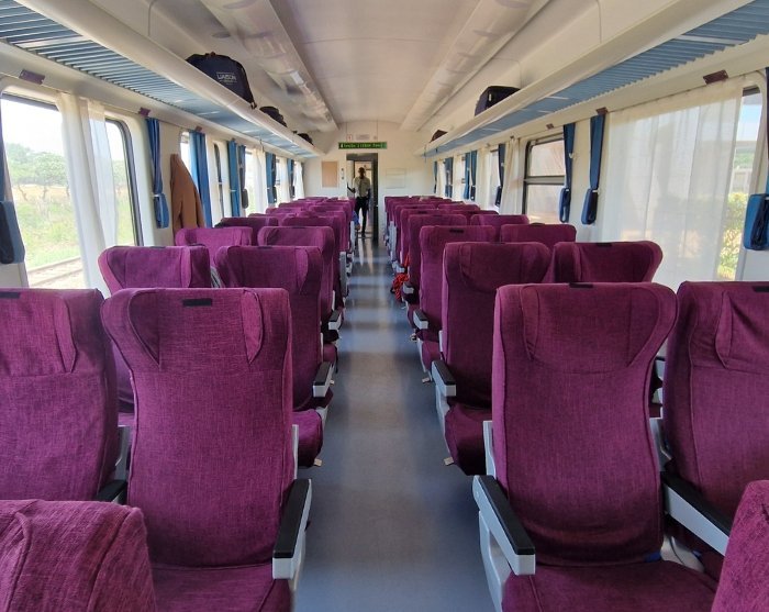 Keniassa käyttämämme junat ovat moderneja, ja niissä on mukavat istuimet, wc-tilat sekä mahdollisuus ostaa juomia ja välipaloja matkan aikana.