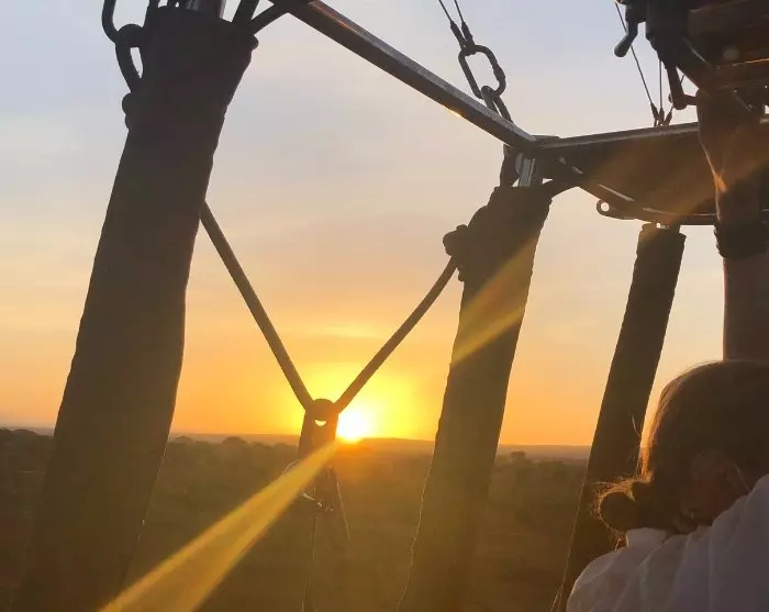 Lentoon lähdetään jo ennen auringonnousua, ja lennon jälkeen ohjelmassa on tietenkin “samppanjabrunssi” – aivan kuten aidolla kuumailmapallosafarilla kuuluukin!