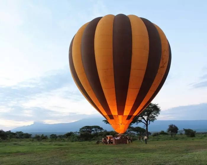 Kuumailmapallosafari Amboselin kansallispuistossa on ainutlaatuinen elämys. Missä muualla voit leijua kuumailmapallon kyydissä ja nähdä samaan aikaan sekä norsuja että maailman korkeimman vapaasti seisovan vuoren?