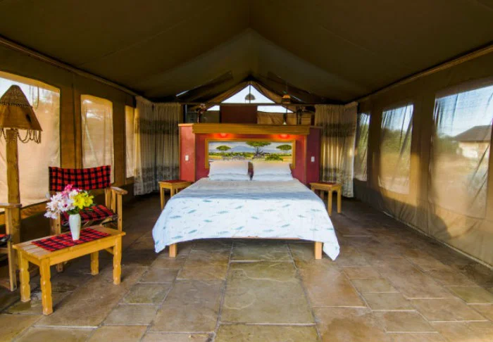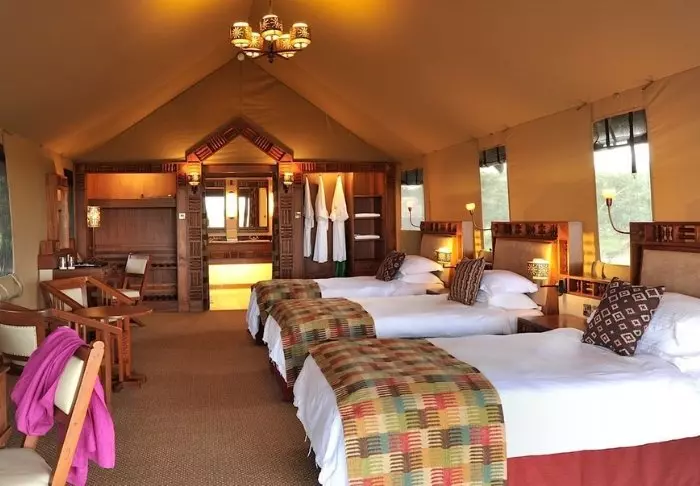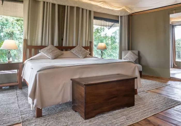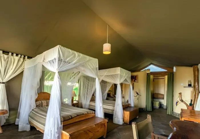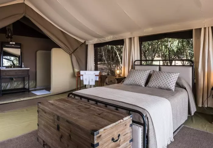 Nimensä mukaisesti tässä safarileirissä majoitutaan teltoissa, joita on yhteensä 15. Teltoissa on runsaasti tilaa sängylle, viihtyisälle oleskelunurkkaukselle, minibaarille ja matkatavaroille. Tilavalla verannalla voit nauttia upeista näköaloista Masai Maraan – ja jos tunnet olosi vähän laiskaksi, voit jäädä sänkyyn ja nauttia näkymistä suurten ikkunoiden läpi. Kaikissa teltoissa on WiFi.