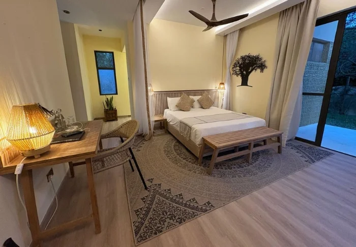Huoneet sijaitsevat pienissä, kaksikerroksisissa “taloissa”, joissa on kussakin 6 huonetta. Kaikki “talot” on liitetty toisiinsa ja päärakennukseen korotetuilla kävelysilloilla, jotka valaistaan kauniisti illan tullen. Tilavissa huoneissa on kaikissa oma kylpyhuone ja veranta.