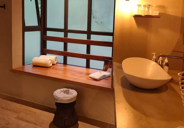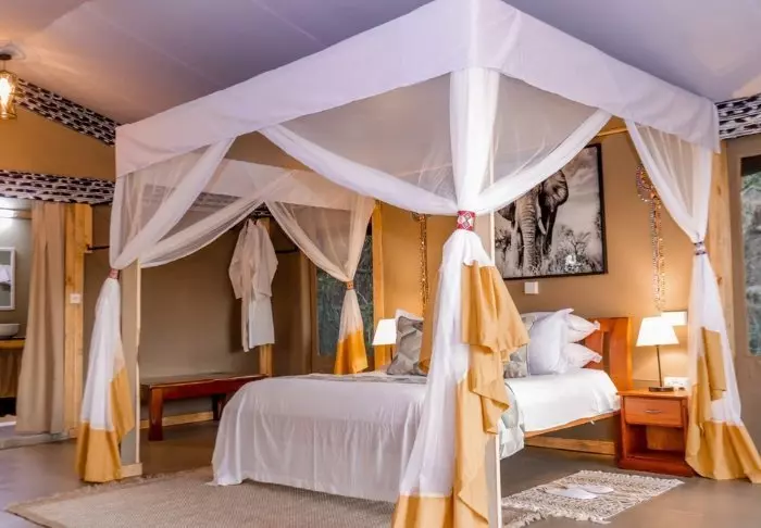 Jos haluat hemmotella itseäsi, suosittelemme huonetason korottamista Elephant Bedroomiin. Elephant Bedroom on klassinen afrikkalainen telttaleiri parhaimmillaan – keskellä villiä luontoa mutta ylellisin mukavuuksin.
