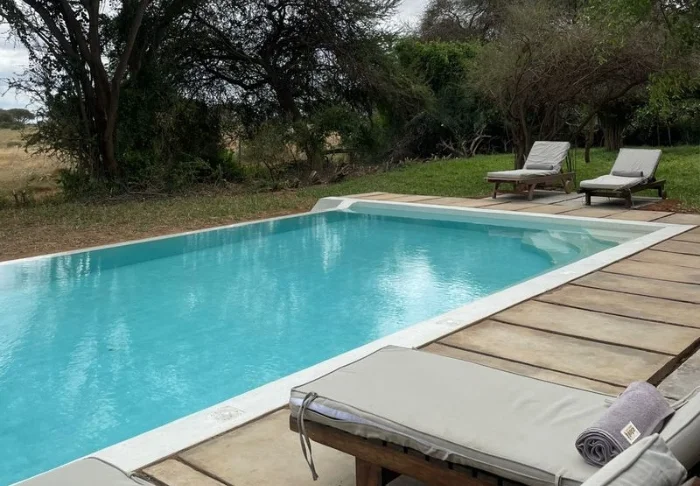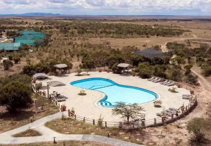 Leiriin kuuluu myös viihtyisä uima-allas, jossa on erityisen mukava virkistäytyä siksi, että tässä osassa Keniaa on varsin kuuma ja kuiva ilmasto. Leirin ravintolasta avautuu hieno näköala ympäröivään luontoon.
