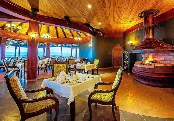 Päärakennuksessa on ravintola, josta on upea näköala Aruba-padolle.
