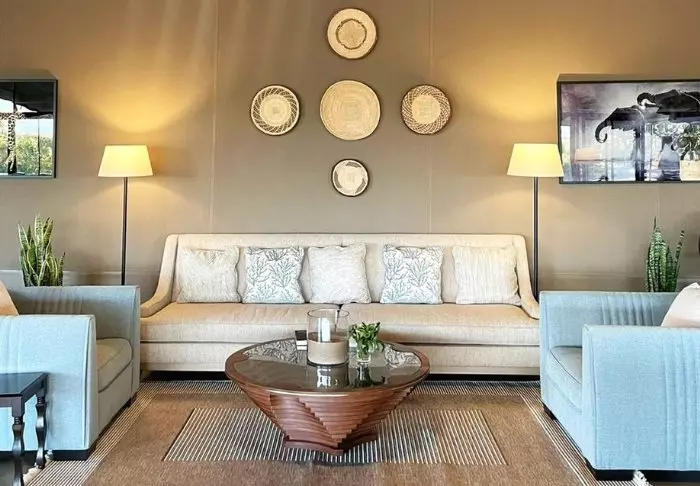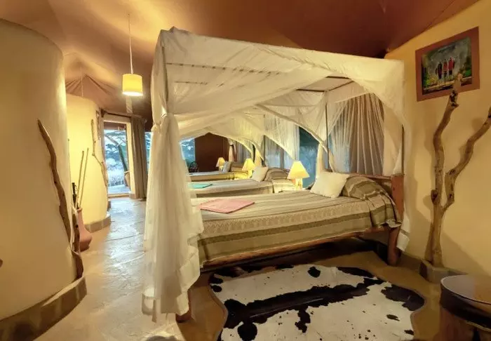 Lodge koostuu 7 pienistä kaksikerroksista ”taloista”, joissa jokaisessa on 10 huonetta. Huoneet ovat sisustettu mukavaan afrikkalaiseen tyyliin. Kaikissa huoneissa on oma kylpyhuone, kattotuuletin, tee- ja kahvinkeittotarvikkeet ja kaikkein tärkein: suuri terassi tai parveke tasangon eläinten katseluun.