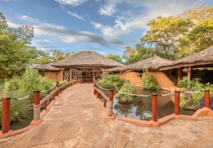 Klassisesta kivirakenteisesta lodgesta on näköala lodgen omalle juottopaikalle, jossa vierailee päivittäin norsuja, puhveleita ja monia muita villejä eläimiä.