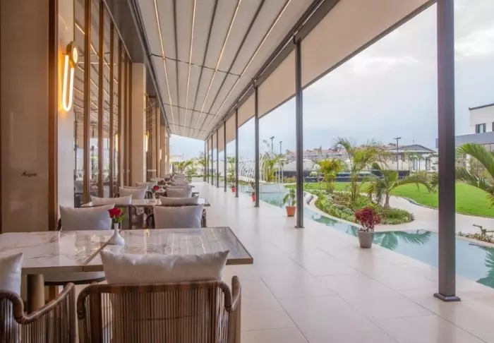 Hotelli on suunniteltu lähes pieneksi kompleksiksi, jonka keskellä on puutarha, jonka toisessa päässä on uima-allas. Täältä löydät aurinkotuolit ja niiden vierestä viehättävän baarin. Hotellissa on myös kolme ravintolaa, oleskelualue ja kuntosali – ja mikä parasta, se on vain 15 minuutin ajomatkan päässä lentokentältä, mikä tekee siitä täydellisen paikan viettää yö matkan alussa tai ennen kotiinpaluuta.