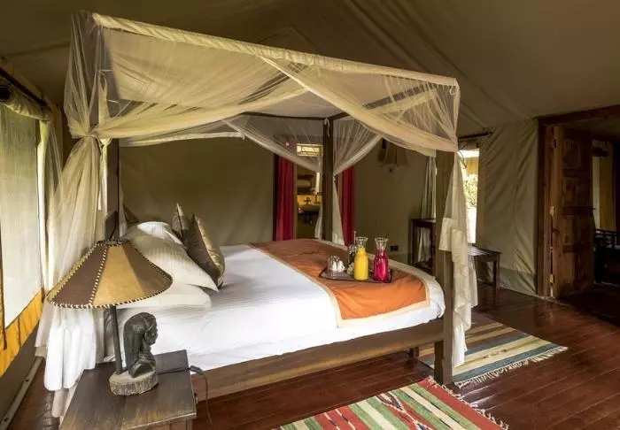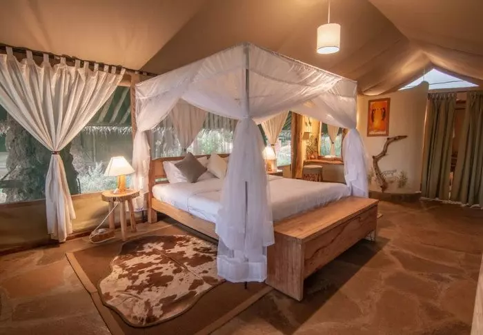 Olet viettänyt koko päivän jännittävällä game drive -ajelulla Masai Marassa, mutta nyt sinulla on aikaa vain rentoutua ja kuunnella Afrikan ääniä. Telttasi on sisustettu klassisen safariteltan tyyliin, mutta ylellisellä tavalla. Teltassa on kangasseinät, hyttysverkoilla varustetut sängyt ovat pehmeitä, ja kylpyhuoneessa on juokseva lämmin vesi. Ummistat silmäsi ja ehkä torkahdat hetkeksi. Eläinten äänet kuuluvat kangasseinien läpi teltan sisään, joten heräilit muutamaan otteeseen edellisenä yönä kuuntelemaan niitä. Mutta kukapa ei kerran haluaisi herätä kaukaisuudesta kuuluvaan leijonien ärinään?