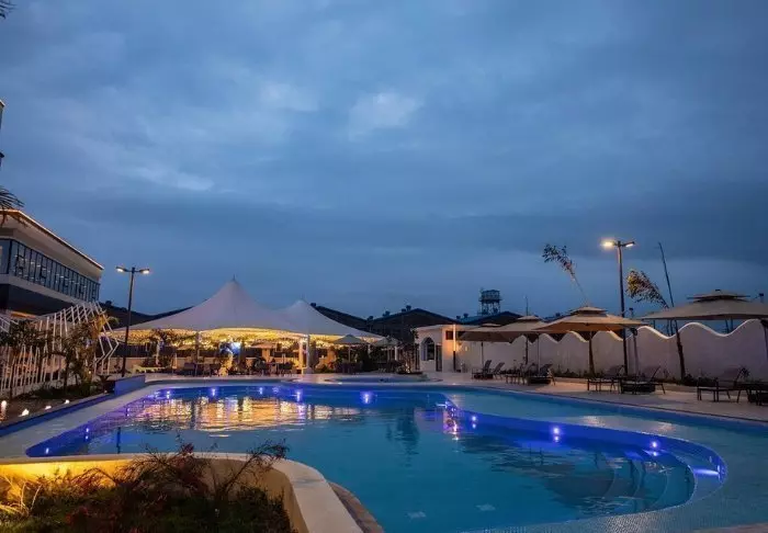 Hotellikompleksin keskellä on uima-allas, jonka ympärille on järjestetty aurinkotuoleja. Jos haluat mieluummin rentoutua hieronnan parissa, se voidaan järjestää hotellin kylpyläalueella.