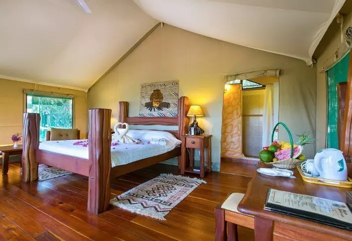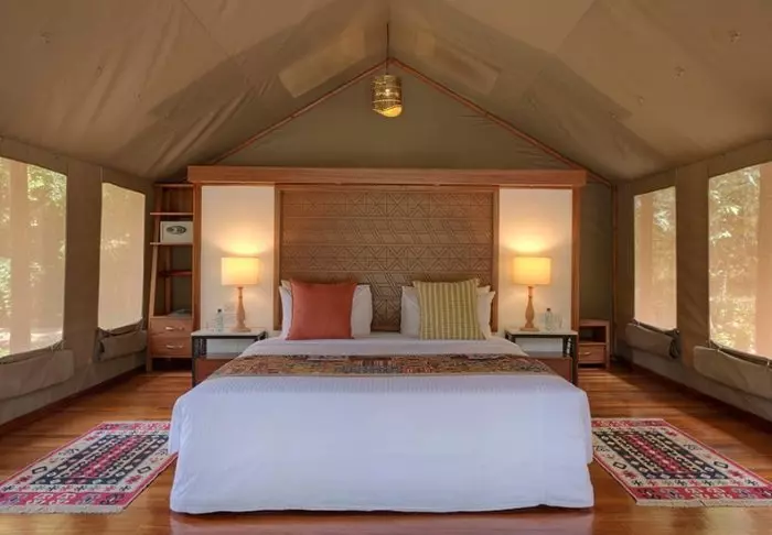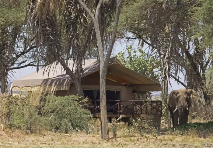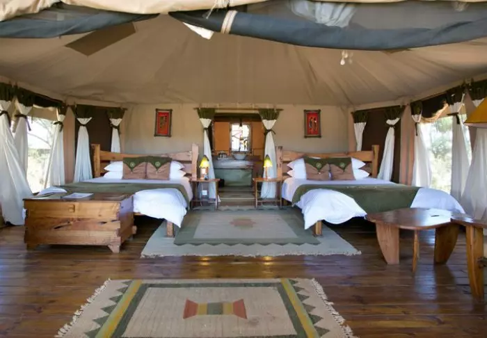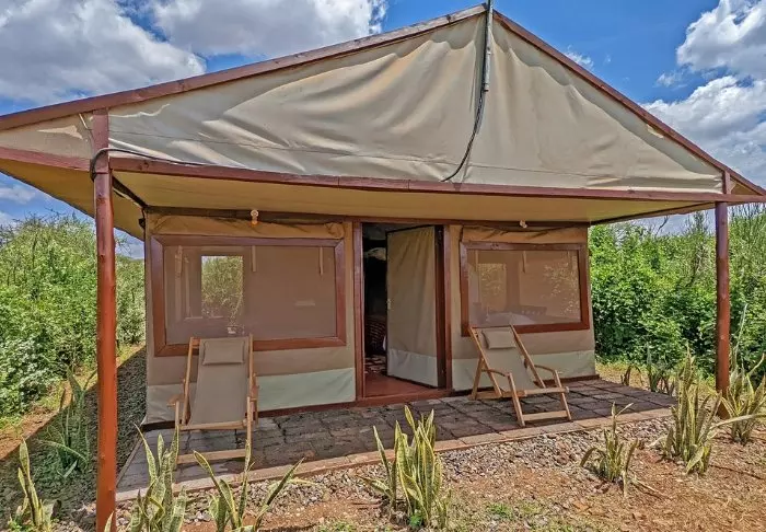 Nimensä mukaisesti tässä safarileirissä majoitutaan teltoissa.