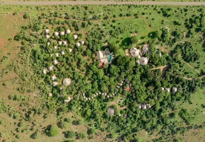 Lodgessa on yhteensä 56 huonetta. Kaikissa huoneissa on oma veranta, ja osasta huoneita on näkymä juottopaikalle ja osasta Chyulu Hills -vuorille.